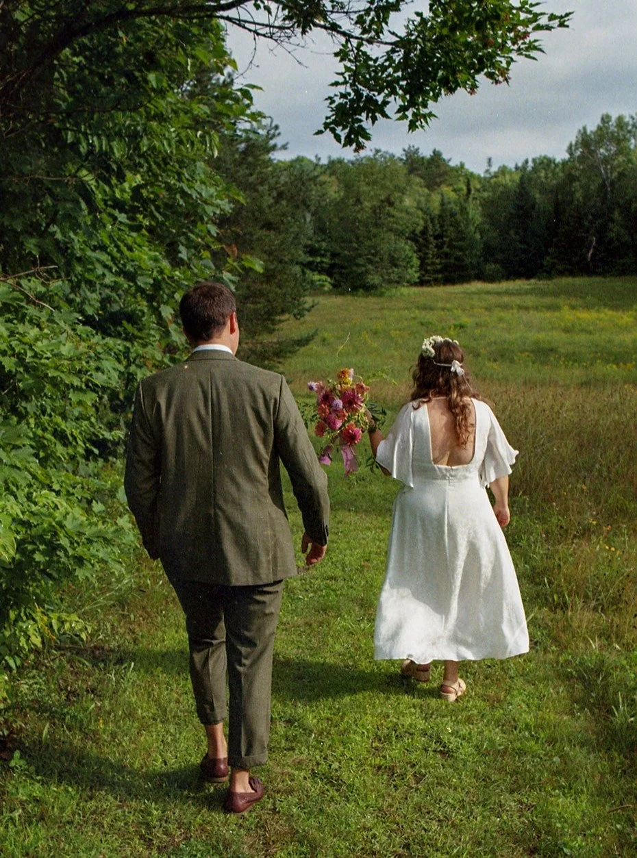 Take a lovely walk through the foggy fields of the Ottawa Valley and pick apples with these beautiful humans in their outdoor wedding portraits. See the lovely candid moments with their family and at home and stunning vintage details, all captured on 35mm film.